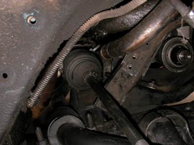So I’ve got this extra pipe whose destination is down low in the passenger side wheelwell by the alternator, but its origin is unknown – somewhere in the front of the car near the radiator. The lower black pipe is the heater core pipe, but the grayish upper pipe along the framerail is the mystery.